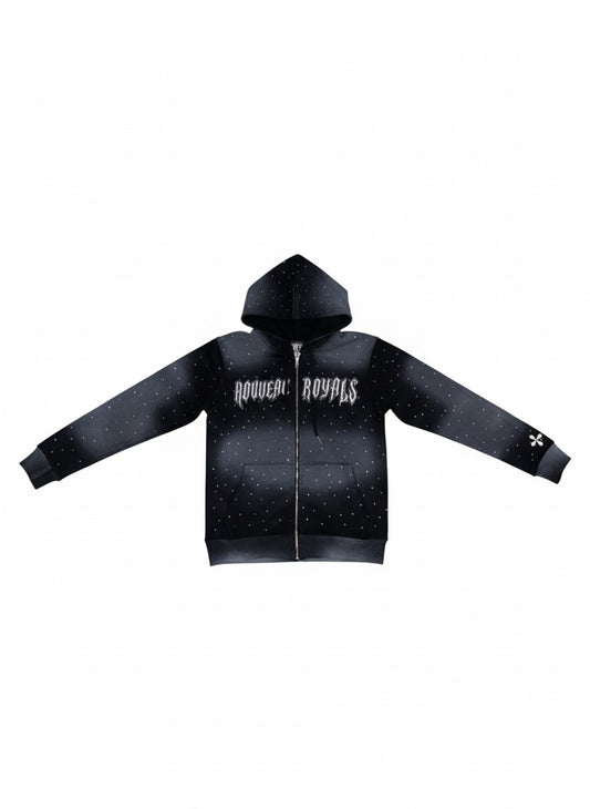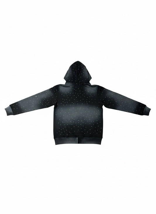Rhinestone Gray Acid Wash Pull-over Hoodie